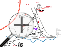 au rond-point la plus proche de l'hôtel que vous apercevrez